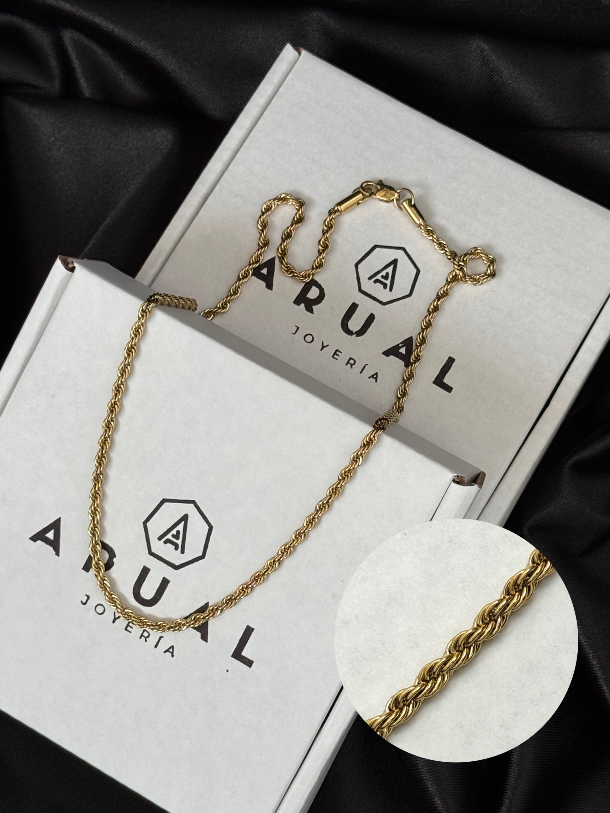 Es una fundición de Oro 18k sobre titanio, que crea una capa gruesa de Oro, con color, brillo y textura de este; lo que hace que sea una joya duradera y resistente. Por esta razón su garantía es de 1 año.