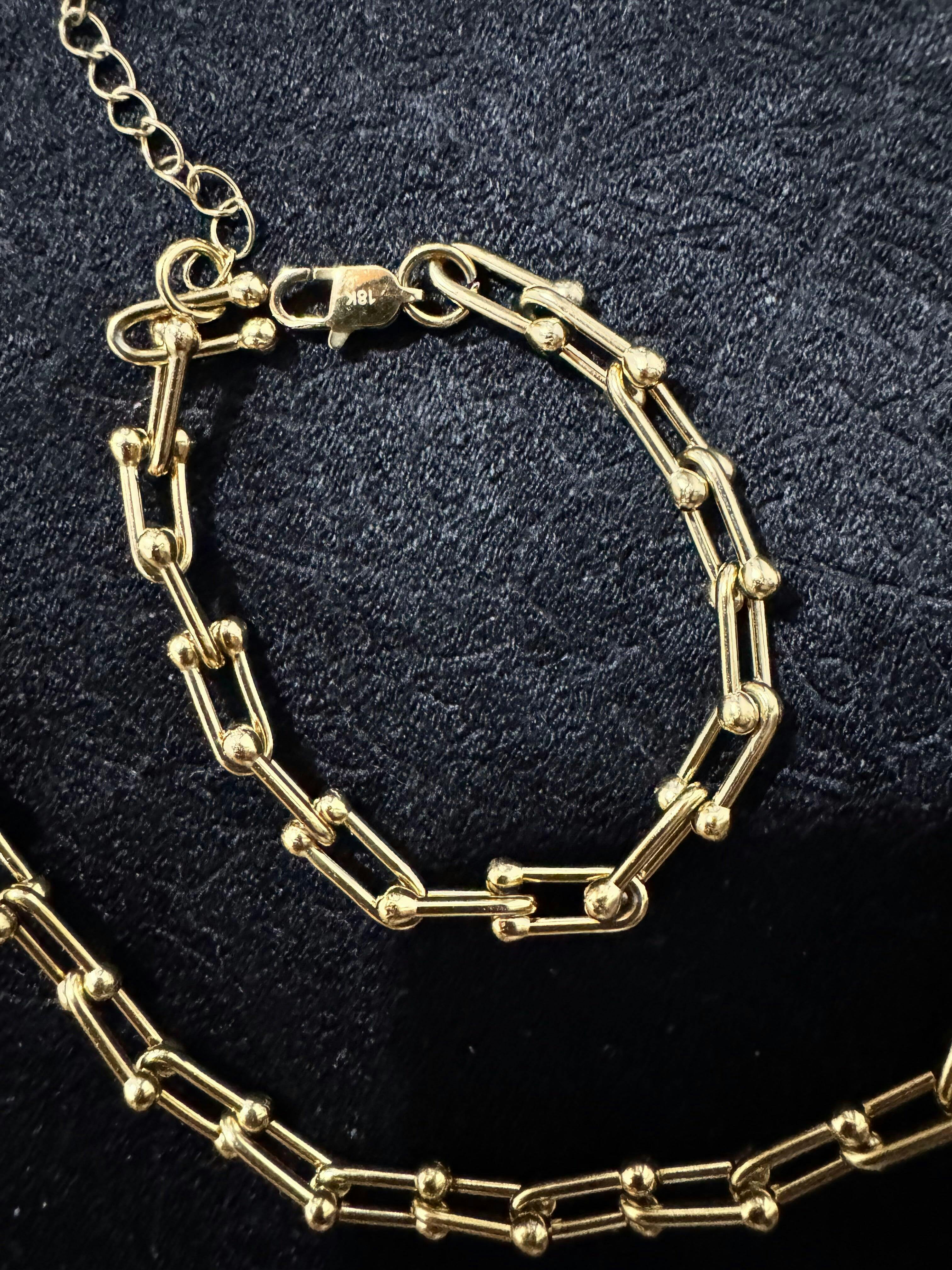 Este dúo de cadena y pulsera simboliza fortaleza, estilo y determinación. Perfecto para recordarte que el poder está en ti: en tu voz, en tu presencia y en la forma en que decides conquistar el mundo. 🌟