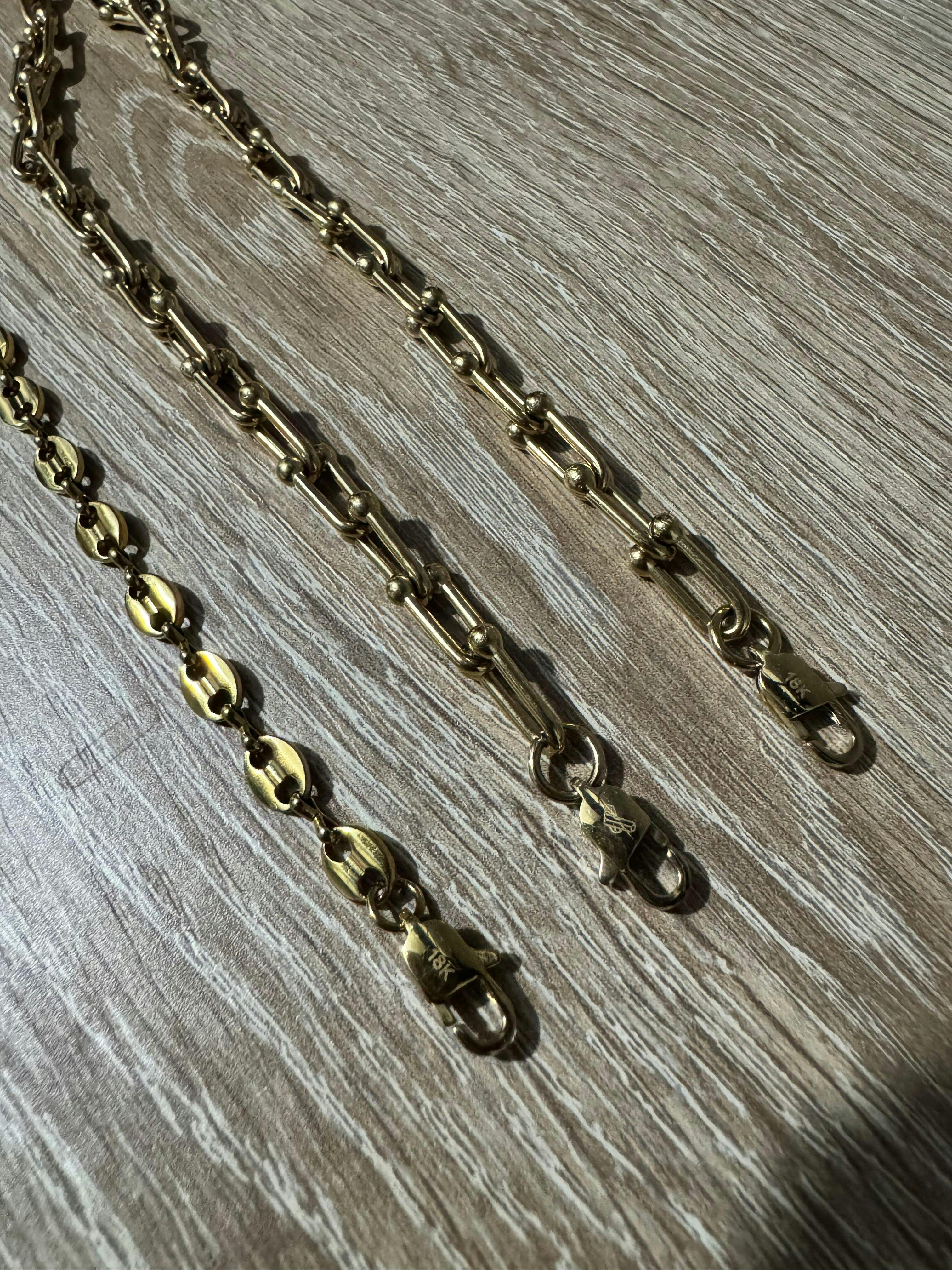 Es una fundición de Oro 18k sobre titanio, que crea una capa gruesa de Oro, con color, brillo y textura de este; lo que hace que sea una joya duradera y resistente. Por esta razón su garantía es de 1 año.