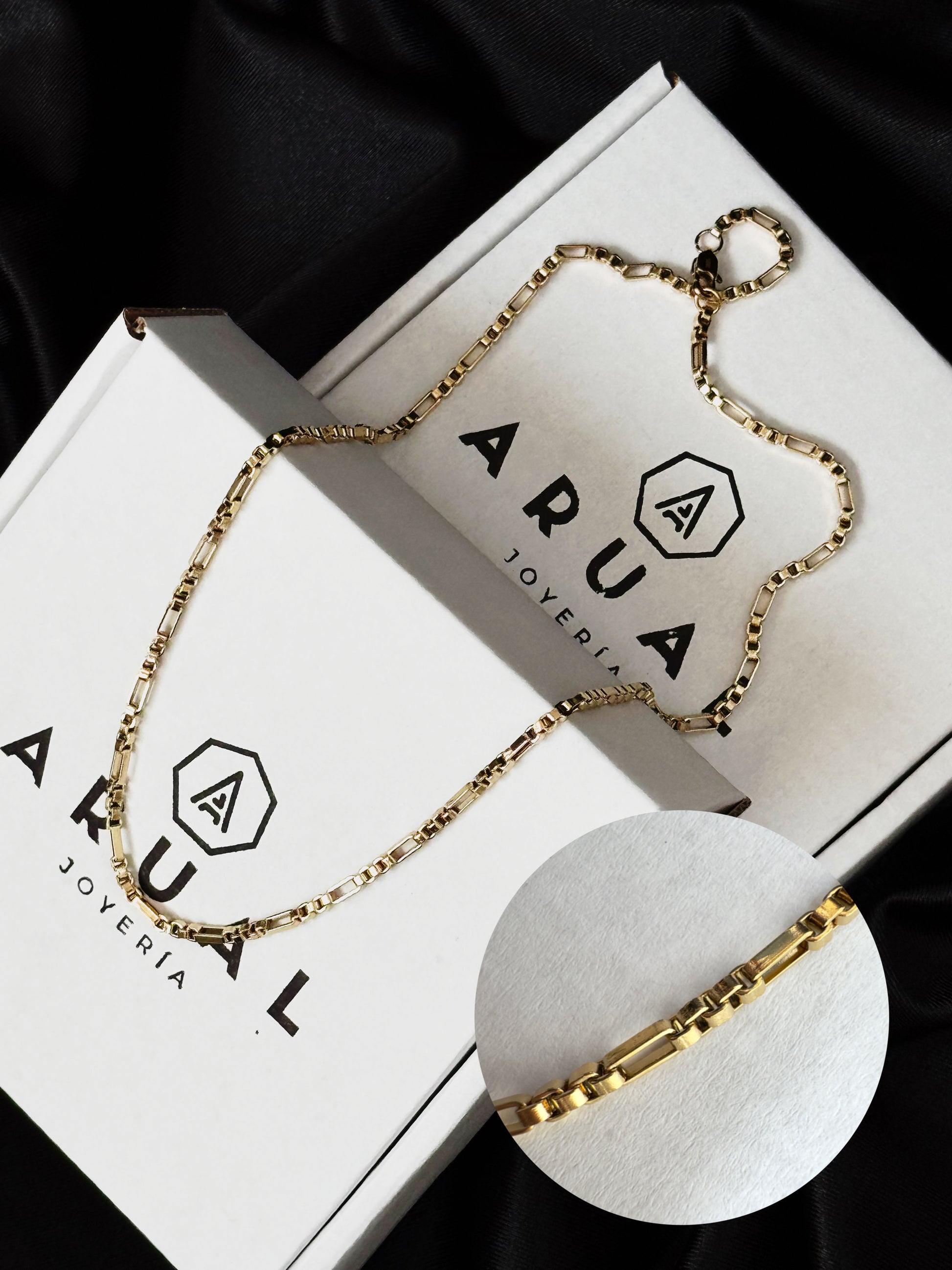 Es una fundición de Oro 18k sobre titanio, que crea una capa gruesa de Oro, con color, brillo y textura de este; lo que hace que sea una joya duradera y resistente. Por esta razón su garantía es de 1 año.
